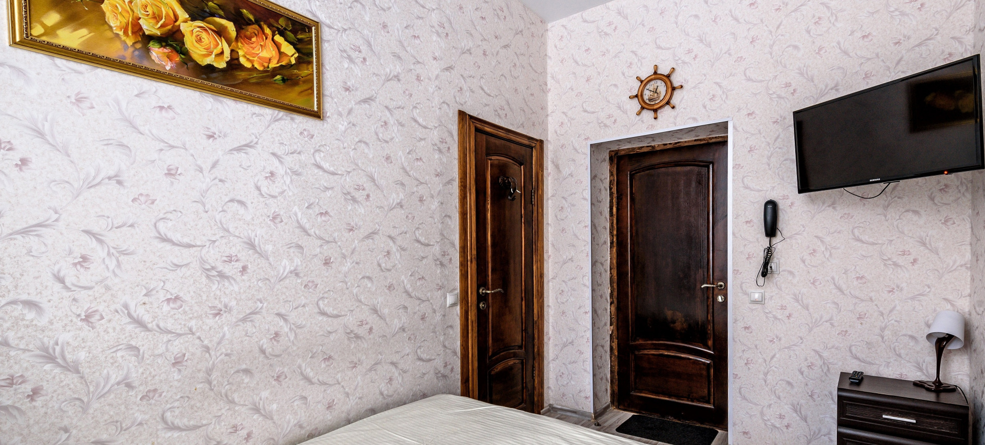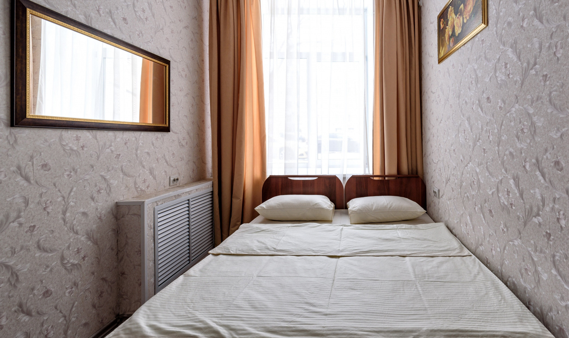 Небольшой однокомнатный двухместный номер с одной двуспальной кроватью.